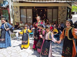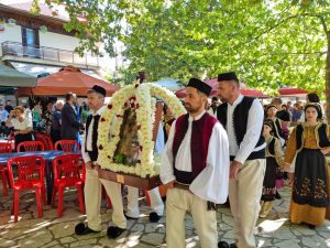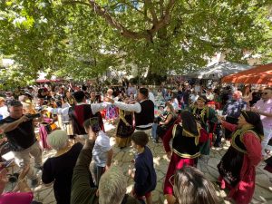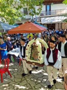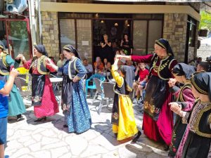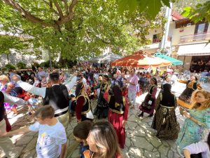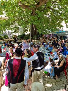 Ένα μικρό δείγμα από την περιφορά της εικόνας της Παναγίας μας στην πλατεία του χωριού και την εμφάνιση του χορευτικού μας γύρω από τον πλάτανο…